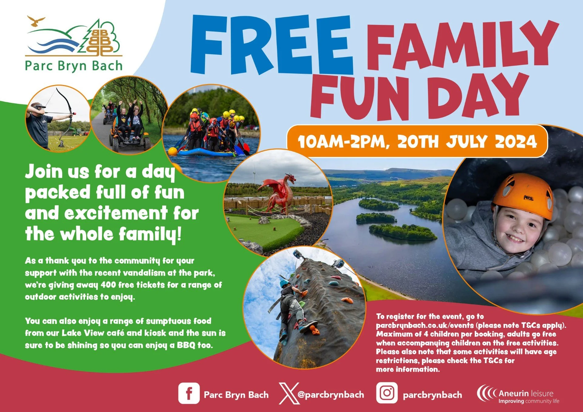 Come along and join us for a free Family Fun Day at Parc Bryn Bach as a thank you to the community for your recent support!